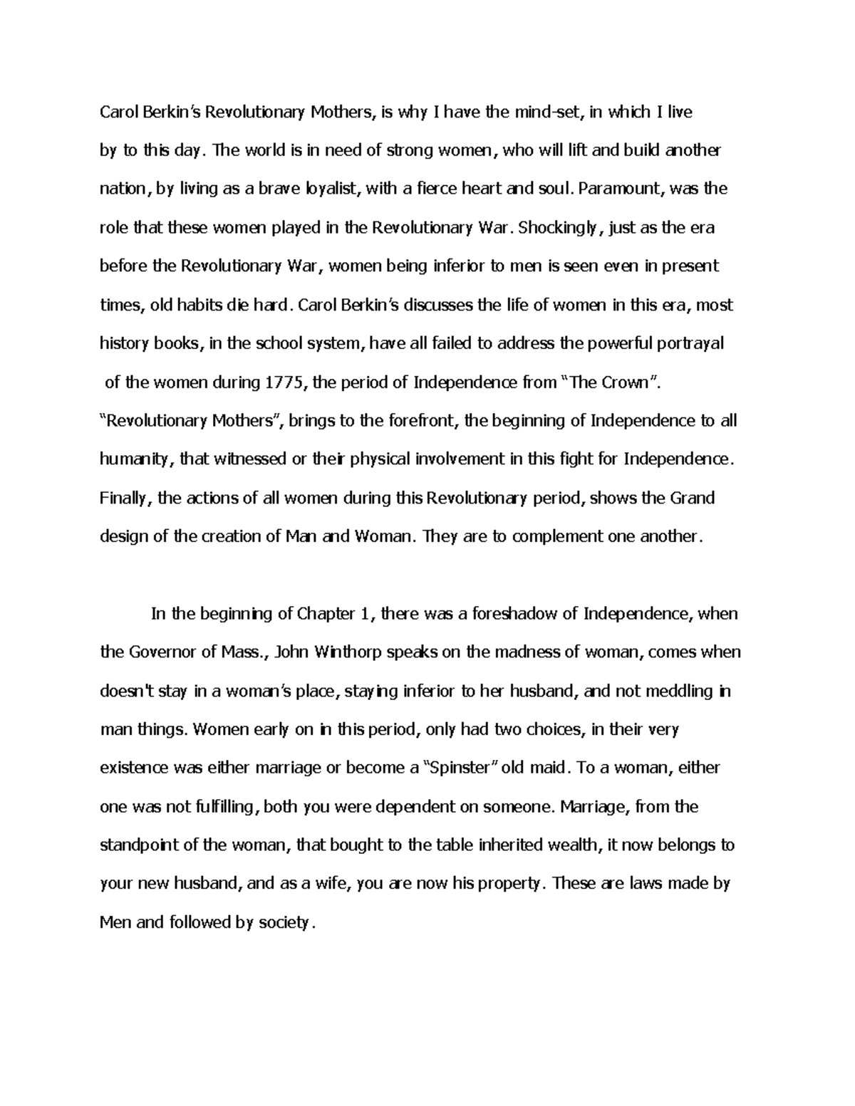 Web In the introduction chapter the author Carol Berkin discusses how in the history books they seem to tell the Revolutionary war as both a quaint and harmless war Berkin pgix. Web Even if youre rich or poor a woman faced restrictions on economic dependence legal identity and her access to positions of formal authority. She was the hope of harmony between the crown and the.